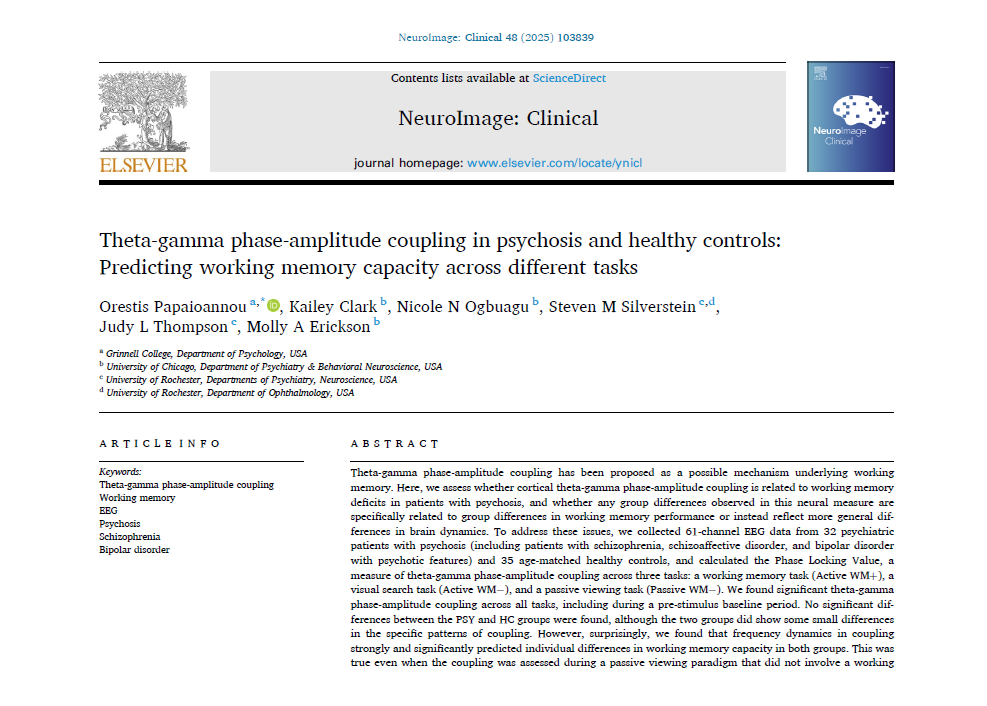 Theta-gamma phase-amplitude coupling is associated with overall working memory capacity in both healthy control subjects and in people with psychosis. Contrary to expectations, however, coupling was not abnormally reduced in the group with psychosis.